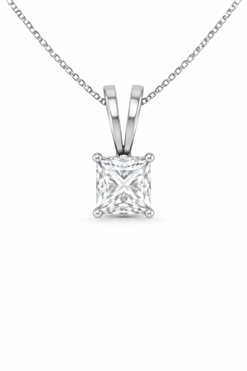 Split bail solitaire Pendant featuring a princess lab-grown diamond.